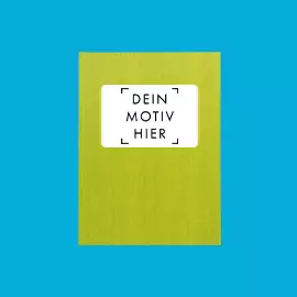Ein farbenfrohes Leinencover in freundlichem Grün ist ideal, um darin eigene Kunstwerke, wie Malereien oder Kunstdrucke zu verewigen.